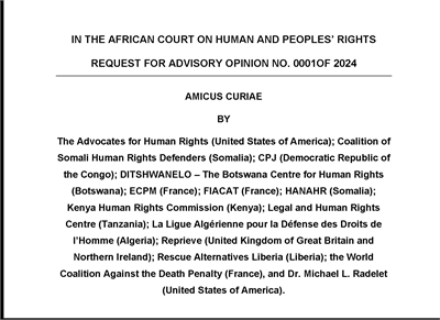 Amicus Curiae brief in support of the Pan African Lawyers Union's request for an Advisory Opinion on the Compatibility of the Death Penalty with the African Charter on Human and Peoples' Rights