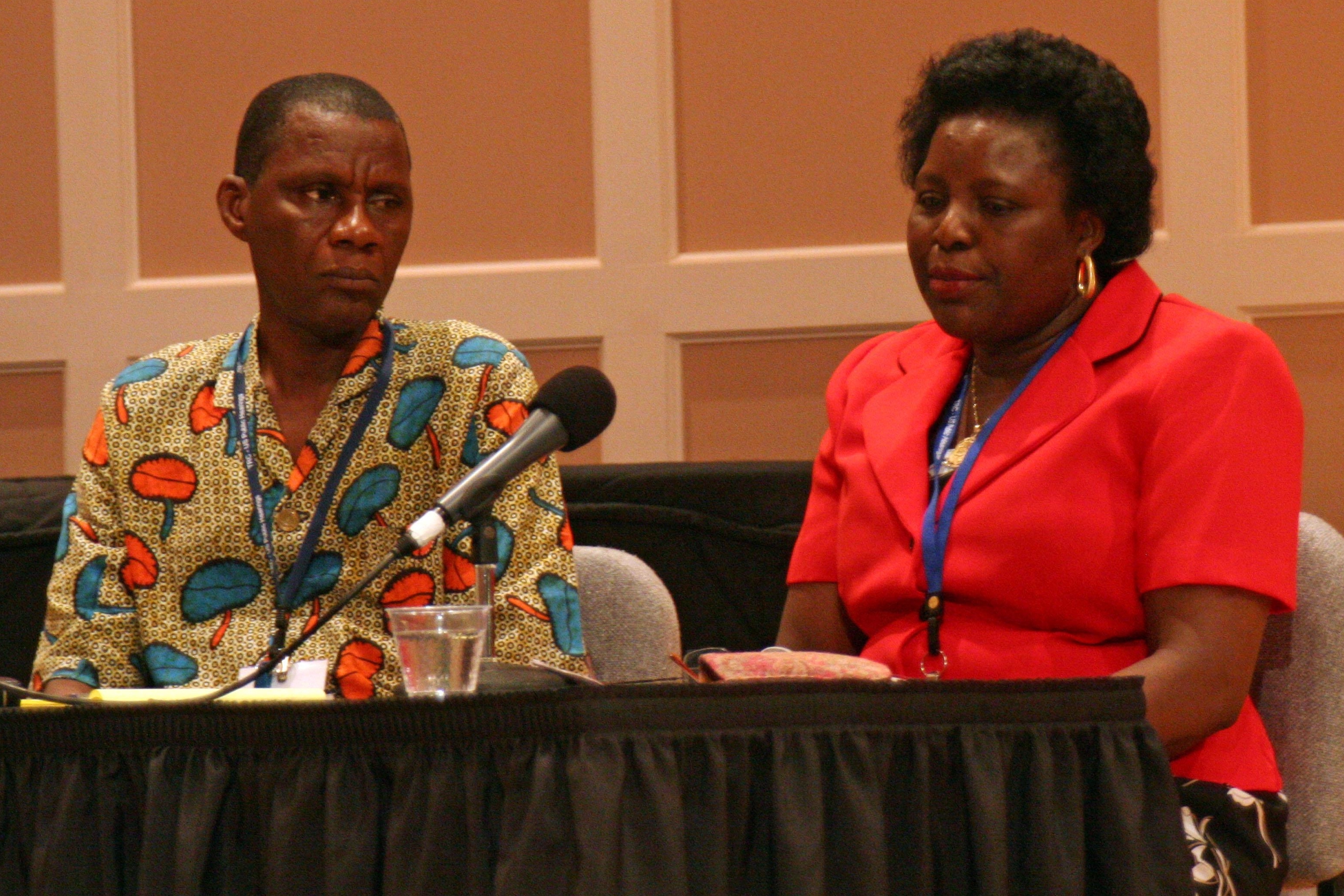Minnesota resident Marie Hayes (in red) testifying at the first ever public hearings of a truth commission held in a diaspora, the Diaspora Hearings of the Liberia Truth and Reconciliation Commission, at Hamline University in St. Paul, MN, June 2008