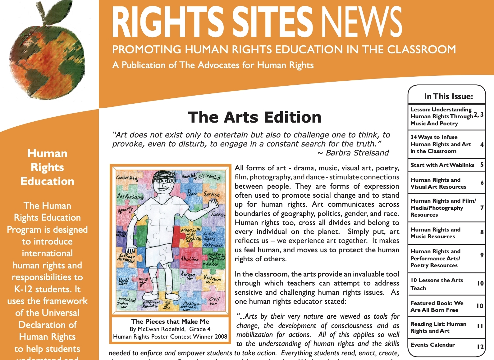 Designed to help teachers use the power of art to advance, protect, and celebrate human rights in their classroom.
